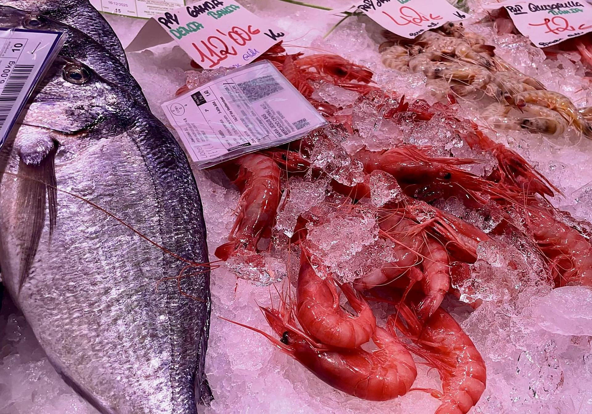 A partir de entonces, muchos clientes piden los productos más apreciados, como gambas o quisquillas, para congelar. El precio de la gamba roja a día de hoy fluctúa desde los 112 a los 72 euros, según calibre. Unos precios que hasta se pueden triplicar para el día 24. En otro nivel, los calamares para rellenar son otra opción al estar de temporada y a buen precio. Por eso, muchos congelan o, directamente, se compran «después de Reyes, que bajan los precios, porque marisco hay todo el año», explica una clienta.