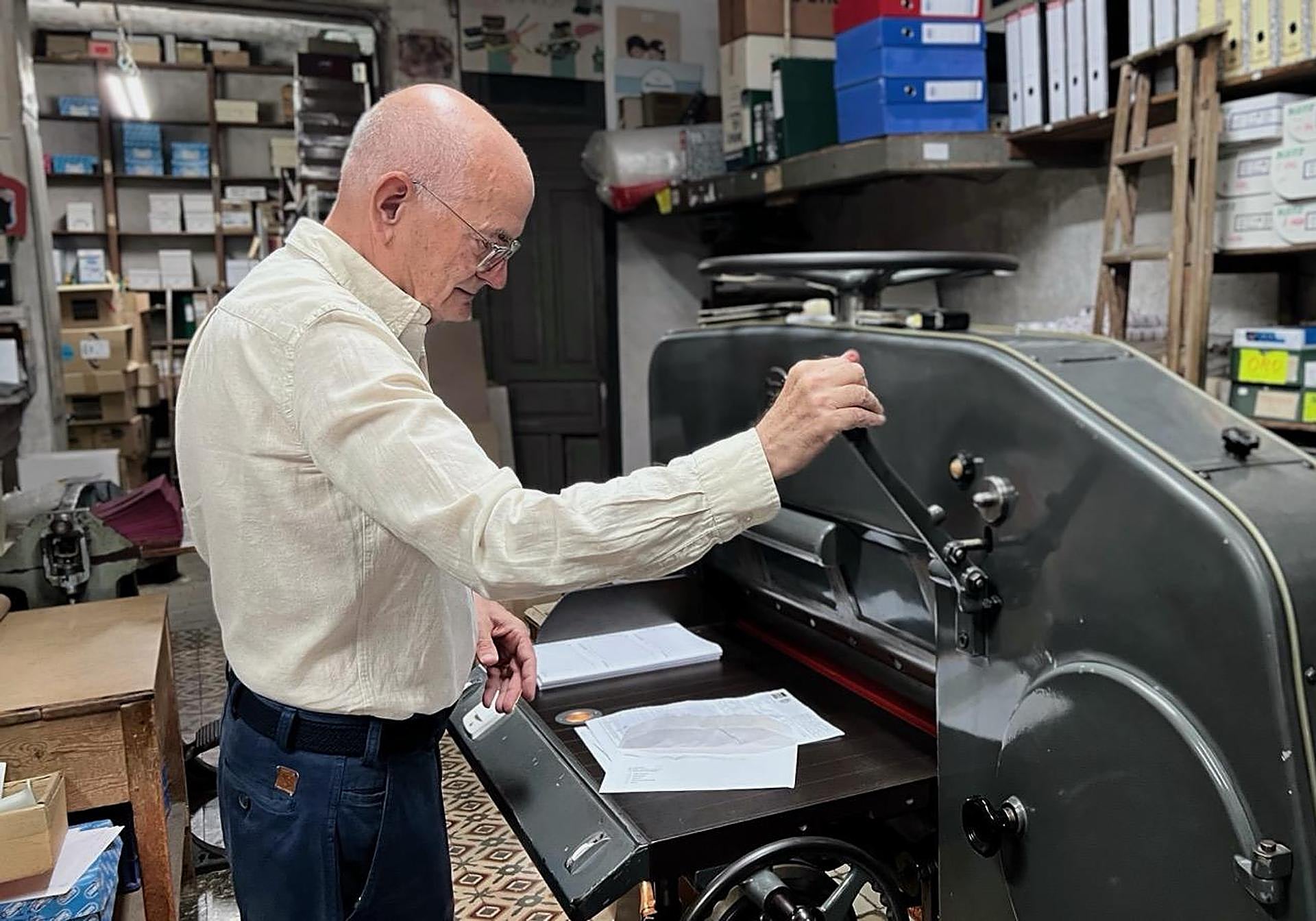 Donde antes se componía letra a letra con piezas de plomo, hoy las máquinas imprimen en minutos. Aún conservan algunas joyas mecánicas: la cortadora de papel, una grapadora de pedal y una máquina de hacer hendidos y agujeros «que todavía funciona» y usan de vez en cuando.
