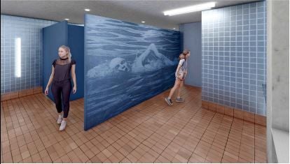 Así, se prevé una nueva distribución de paquete de vestuarios de las piscinas de invierno con dotación de cinco vestuarios, cabinas adaptadas, aseos y duchas que dan servicio directo a las piscinas, cuarto de limpieza, almacén y sala para monitor.