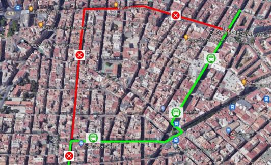 Las paradas habilitadas son San Mateo 25 y 1, Poeta Zorrilla 9. Se anulan las paradas Amadeo de Saboya 5, Gral. Espartero 5, Sevilla 67.