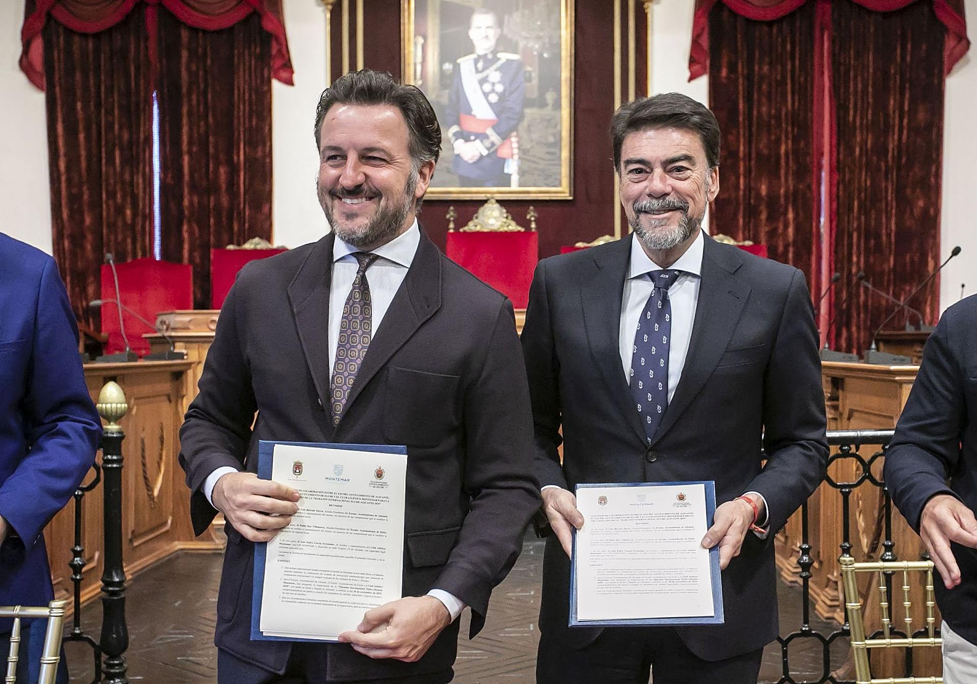 Barcala ha visitado el Ayuntamiento de Elche para firmar el convenio de la primera Maratón Elche-Alicante. Sin embargo, una semana antes también acudió a la ciudad vecina para contemplar la Coronación del Misteri d'Elx, segunda ocasión a la que asiste.