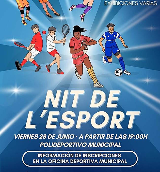 El 28 de junio se celebrará «La Nit de l'Esport». El evento, que empezará a las 19:00 horas en el polideportivo municipal, ofertará a través de los clubs municipales diversas competiciones de voleibol y fútbol entre otras disciplinas.