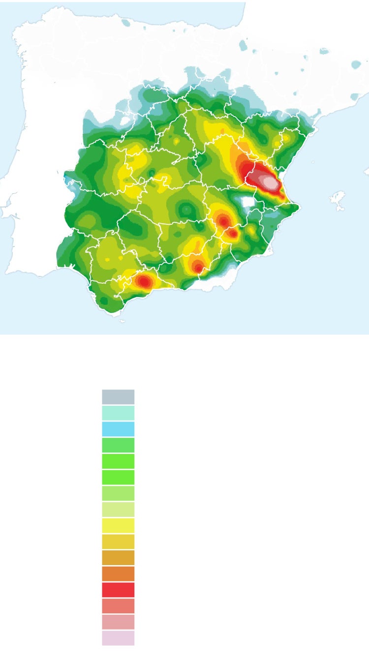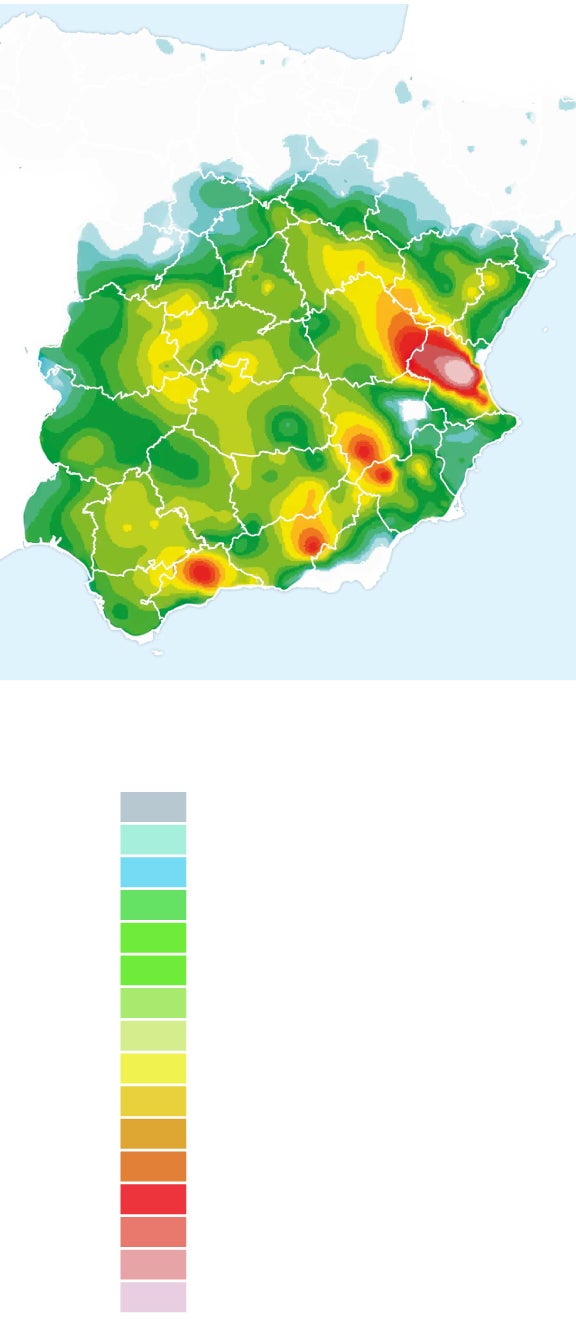 En las estaciones oficiales de Aemet los registros de precipitación acumulada en 24 horas confirman la excepcionalidad del episodio en distintas zonas. Destacan acumulados superiores a los 150 mm en puntos como Álora (Málaga), Dólar (Granada), Caravaca (Murcia) y el embalse de la Fuensanta (Albacete), lo que evidencia la extensión y severidad de este episodio, también en áreas del interior peninsular y del sur.