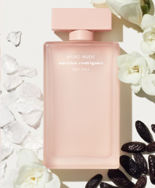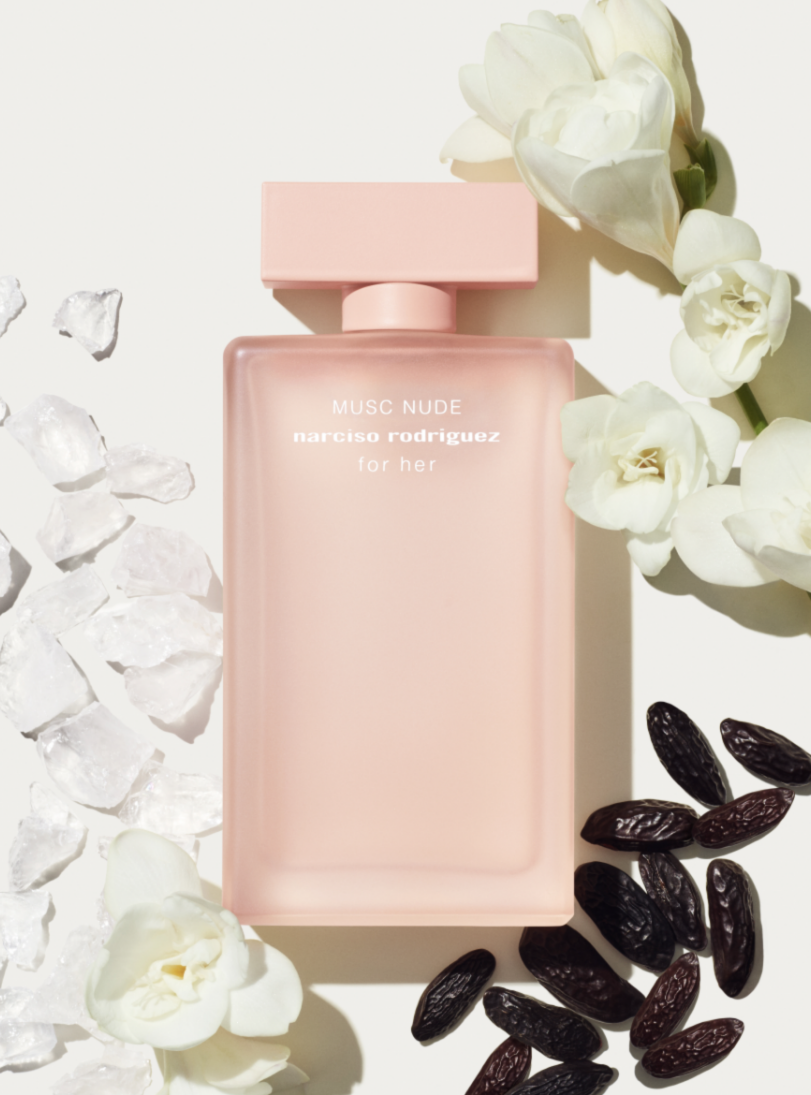 Con For Her Musc Nude, Narciso Rodríguez reinterpreta el espíritu elegante y seductor de los perfumes Chipre. La fragancia se abre con una picante nota de pimienta rosa y un buqué de flores delicadas. El acorde de jazmín blanco ilumina la fragancia y precede a la delicada rosa damascena, recogida a mano en las primeras horas de la mañana para capturar su esencia en su punto más álgido, y que impregna el corazón del perfume a base de almizcle –la firma olfativa que caracteriza a la gama For Her–.