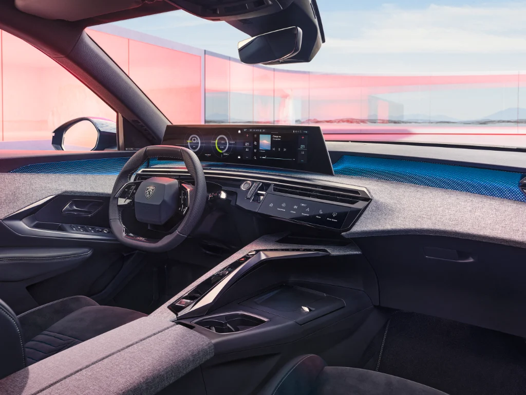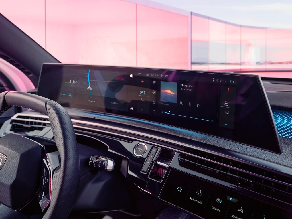 Para la comodidad y seguridad del conductor está pensado el puesto Panoramic i-Cockpit®, que dispone de una pantalla panorámica HD flotante y curvada de 21 pulgadas que combina el Head-up Display con la pantalla táctil central. Este centro de mando congrega un amplio repertorio de funciones de ayuda a la conducción que incrementan el placer y la seguridad en el desplazamiento.