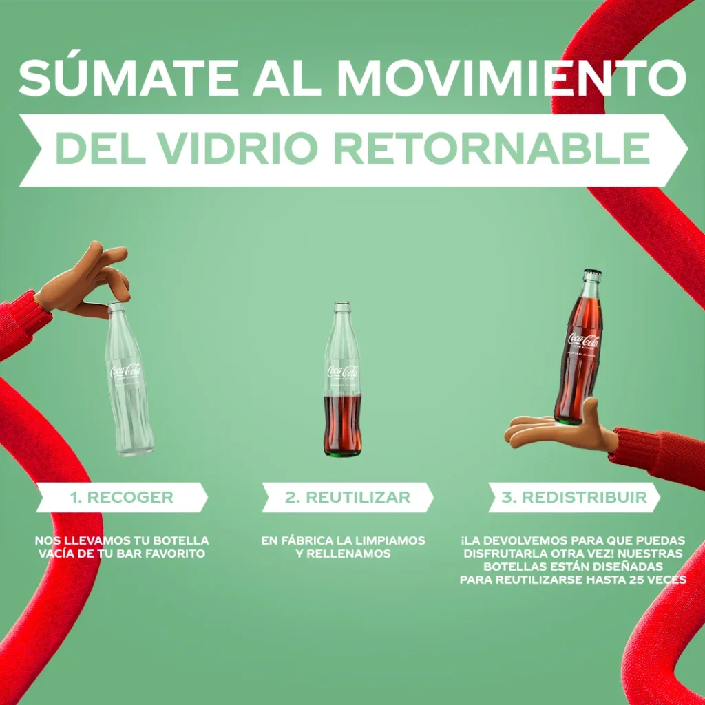 Entras a tu bar favorito y te saludan por tu nombre. Es una sensación como de estar en casa. Tras unos saludos cariñosos te sirven, sin que tengas que pedirlo, ‘lo de siempre’. Una Coca-Cola bien fresquita, en botella de vidrio, y un vaso ancho con mucho hielo, como a ti te gusta. Das el primer trago, respiras, disfrutas. Es tu momento. Cuando terminas, te despides mientras el camarero se lleva la botella de vidrio vacía, y tú sigues con tu día. Lo que quizás no sabes, porque no te has parado a pensar, es que esa botella aún no ha llegado al final de su viaje. De hecho, está a punto de comenzar su nueva vida.