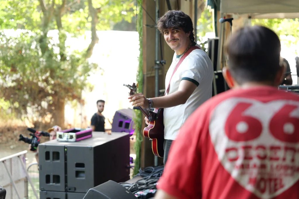 Por la mañana, el entusiasmo se dejaba sentir con más fuerza: café apresurado, mochilas llenas de cables y partituras, instrumentos a la espalda y camino al Recinto Cantarranas, en la Complutense. El ambiente del festival vibraba desde la entrada: escenarios listos, barras preparadas, pulseras en la mano y una efervescencia que contagiaba el ambiente.