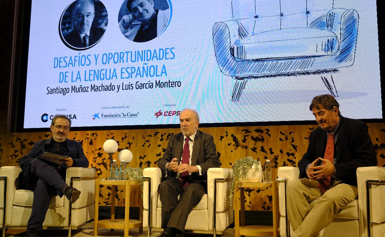 Los más fieles guardianes de nuestro milenario idioma, Santiago Muñoz Machado (Pozoblanco, Córdoba, 73 años), director de la Real Academia Española (RAE), y Luis García Montero (Granada, 63 años), director del Instituto Cervantes, empeñaron este lunes su palabra para seguir promoviendo el español en el mundo y defenderlo del uso (habitualmente del mal uso) que de él hace la inteligencia artificial. «Las máquinas tienen que hablar bien el idioma español. No se puede dejar a los robots que hagan lo que les dé la gana; estamos bajo la dictadura del algoritmo, que reduce el número de palabras y expulsa la riqueza del español», señaló Muñoz Machado en el acto celebrado este mediodía en CaixaFórum Madrid, que ha acogido una edición más de 'La Conversación', el espacio de reflexión organizado por Colpisa con motivo de su 50 aniversario, patrocinado por Cepsa.