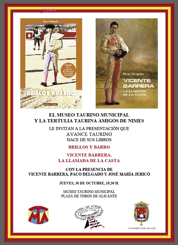 El torero Vicente Barrera asistirá este jueves 30 de octubre al Museo Taurino de Alicante para presentar a las 19.30 horas el libro, original de Paco Delgado, 'Vicente Barrera: la llamada de la casta'.