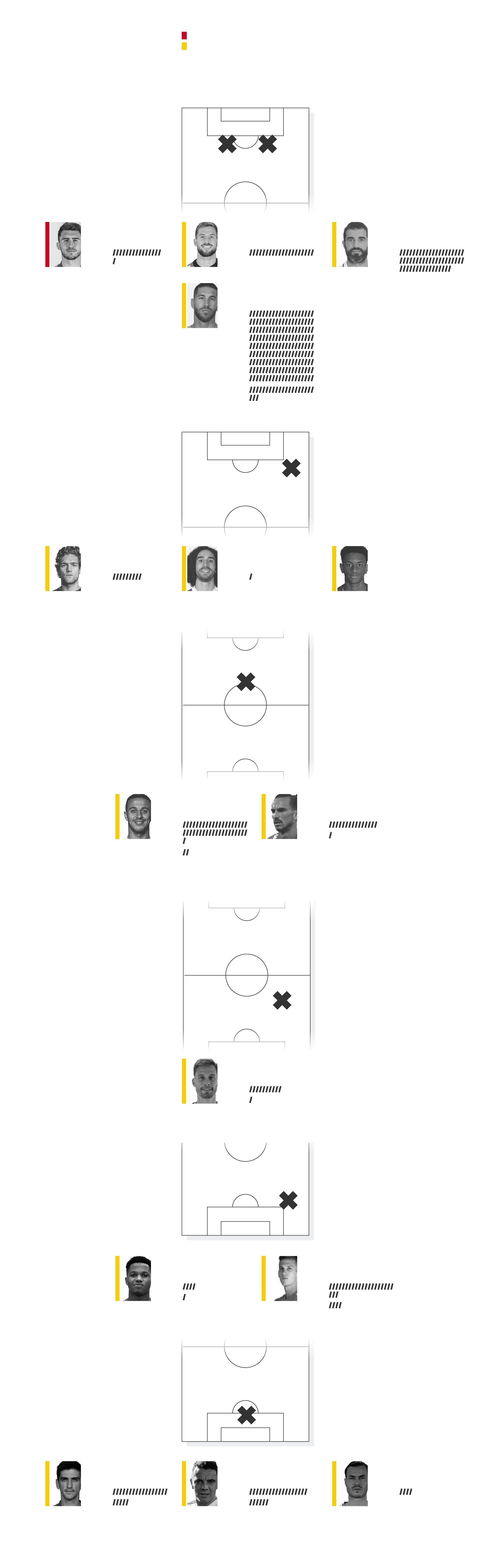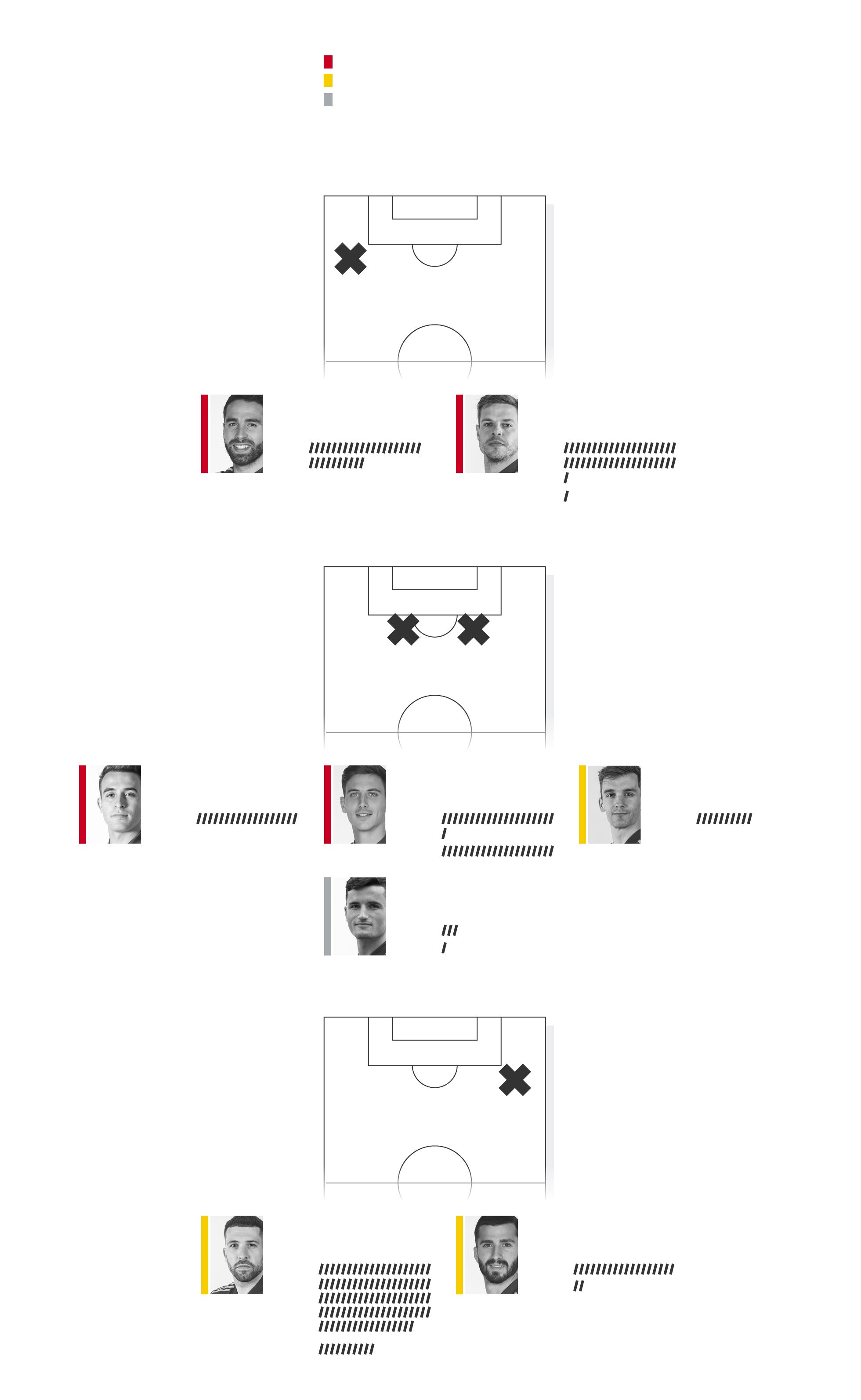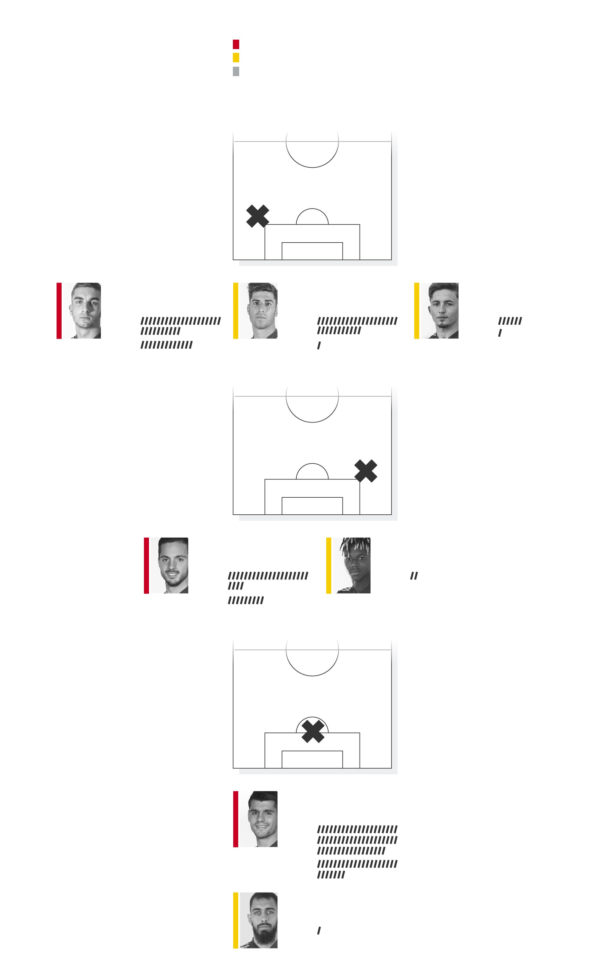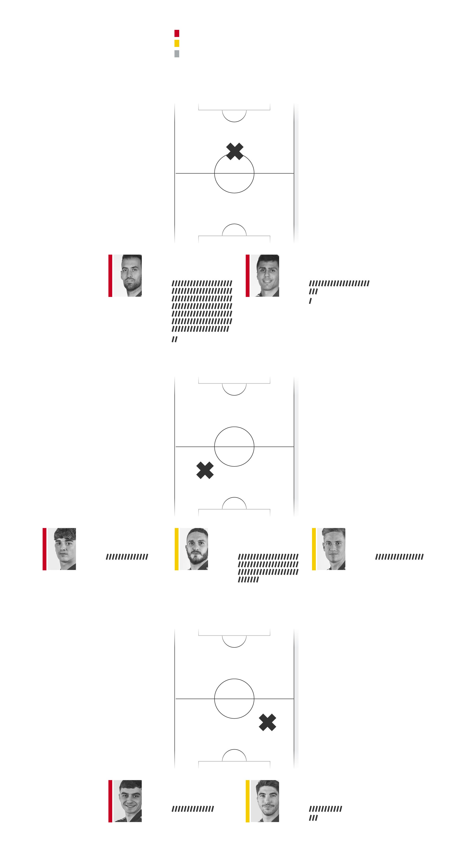 Carlos Soler, Koke y el versátil Marcos Llorente completan ahora mismo la posición. Los dos primeros fueron titulares como pareja de interiores ante Portugal en Braga, donde garantizaron la posesión de balón pero fueron incapaces de aportar verticalidad y meterle una marcha más al partido. El tercero es valorado por Luis Enrique cómo un auténtico comodín.