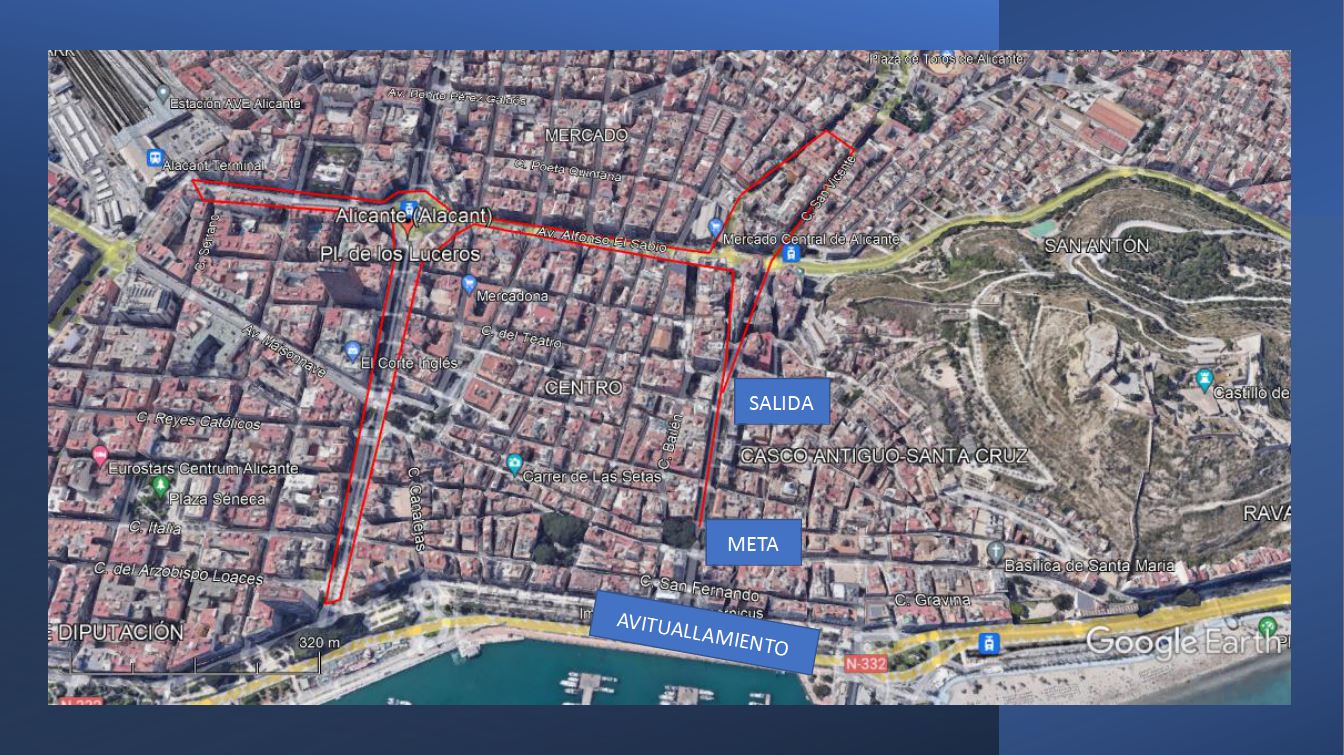 La Carrera San Silvestre Solidaria de Alicante se disputa este viernes 29 de diciembre con salida a las 19:30 horas desde la Rambla. La salida y la meta estarán situadas en la Rambla de Méndez Núñez, a la altura de la Casa de la Festa 'Manuel Ricarte'. La prueba, con tres kilómetros de recorrido aproximadamente, discurrirá por Rambla, San Vicente, Alfonso El Sabio, General Marvá, avenida de la Estación, Gadea, Soto, Alfonso El Sabio, López Torregrosa y Rambla de Méndez Núñez.