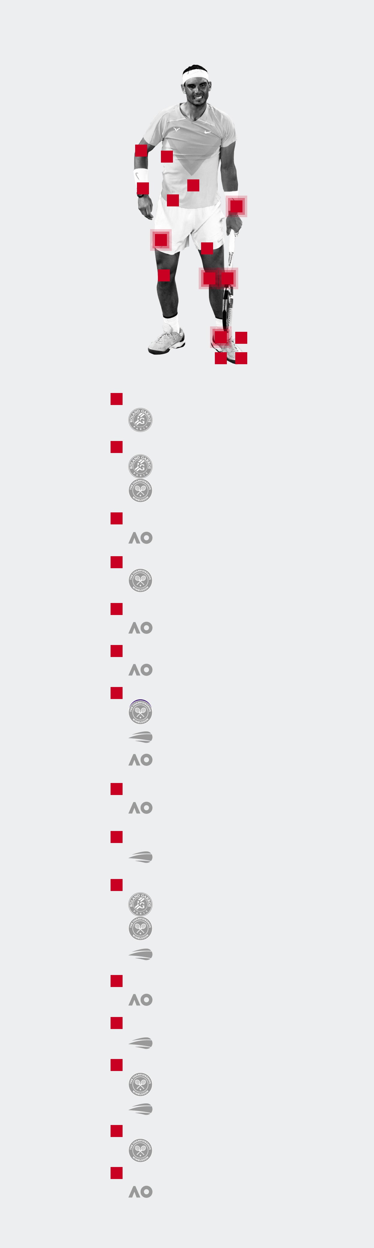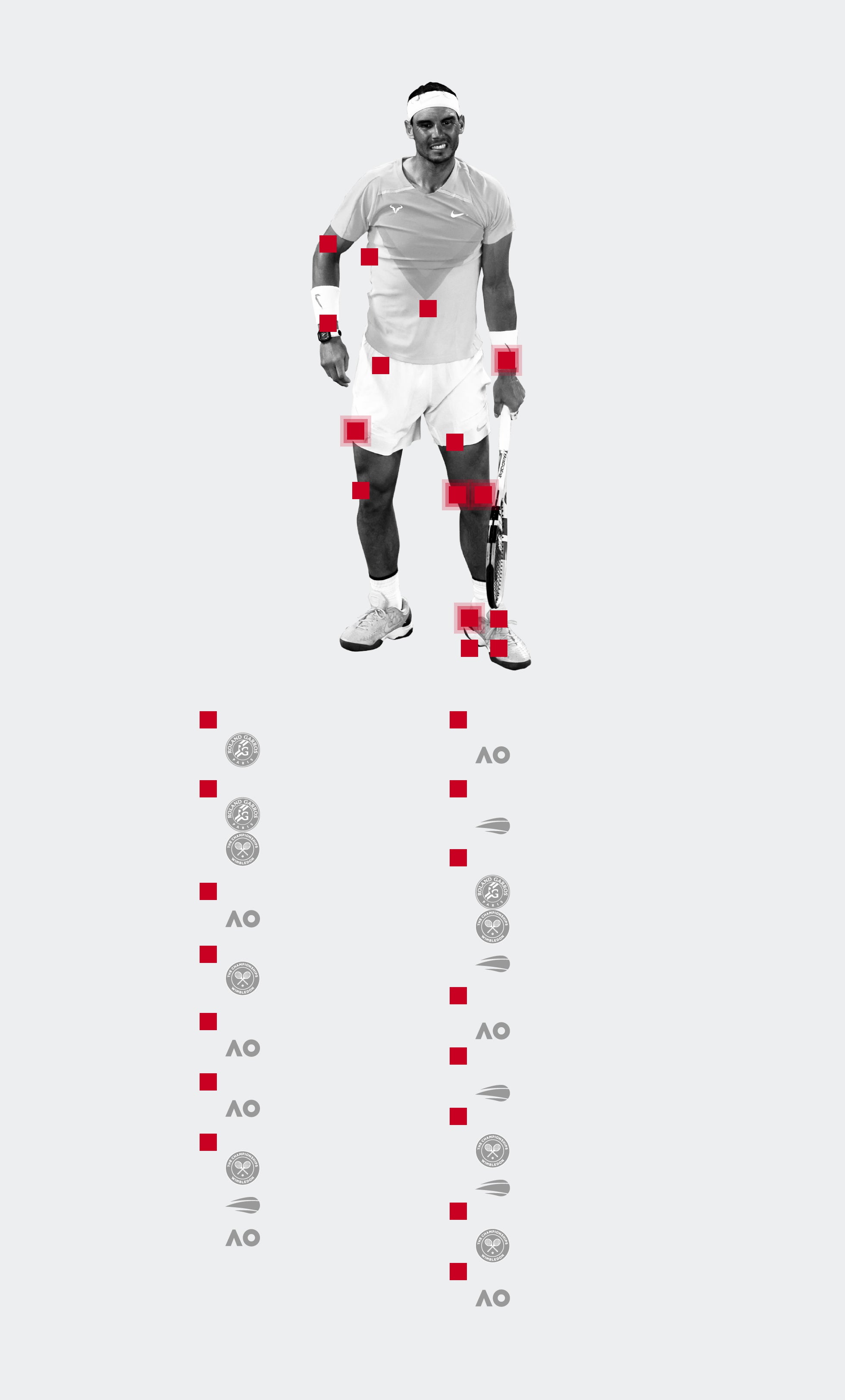 Con 22 Grand Slams en su haber, el balear ha sufrido multitud de lesiones que le han impedido agrandar aún más su leyenda