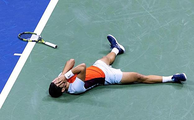 Carlos Alcaraz era un hombre emocionado pero con los pies en la tierra, o mejor en el cemento de Flushing Meadows, tras meterse en su primera final de Grand Slam en el Abierto de Estados Unidos: «Lo vivido es increíble. En las semifinales hay que darlo todo, pelear hasta la última bola, da igual si llevas peleando cinco horas o seis», aseguró el tenista murciano, tras la extenuante batalla con Frances Tiafoe de cuatro horas y dieciocho minutos. El tenista español, que se ha metido en la final después de jugar a cinco sets en octavos, cuartos y semifinales, reconoció que «han sido tres partidos muy largos, muy exigentes, de gran desgaste físico y mental».