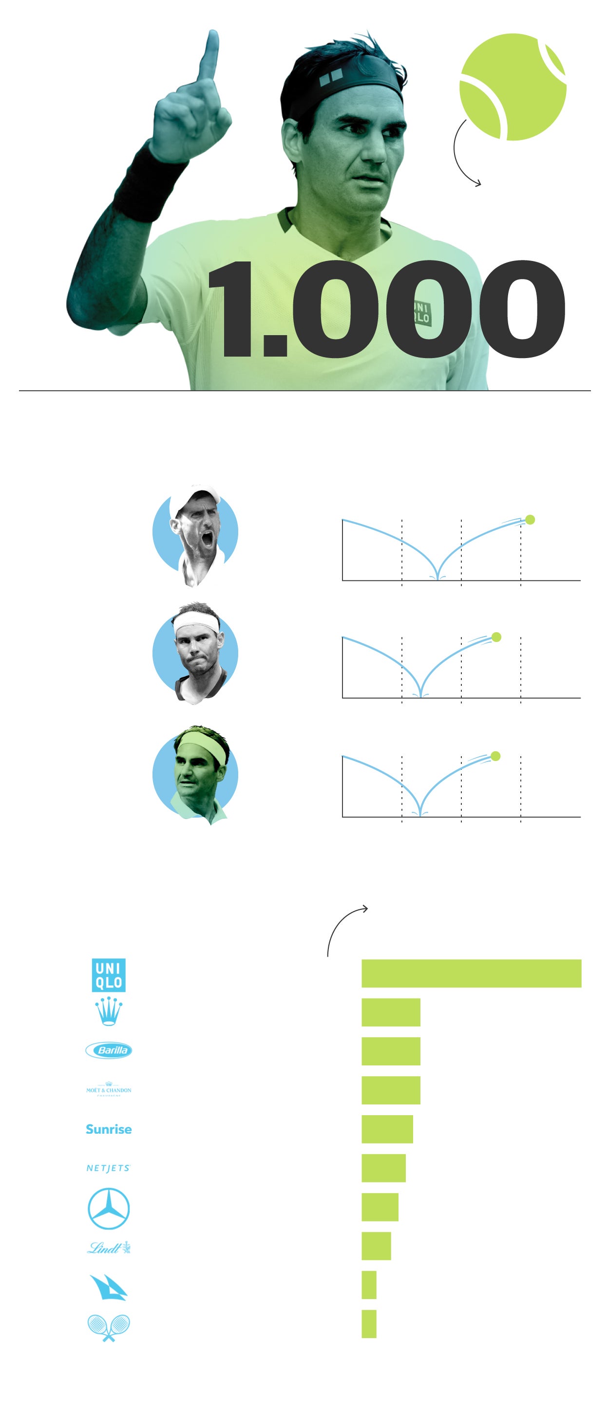 Todo gracias a un aura de caballerosidad, armonía y talento expandido a lo largo de 24 años de carrera. No fue sorpresa cuando Uniqlo, marca japonesa de ropa, le puso sobre la mesa el mayor acuerdo económico de su carrera al borde de los 37 años. 300 millones en diez años, es decir, 10 millones por temporada, que cubrían más allá del momento de su retirada. Federer estaría blindado por millones hasta los 46 años.