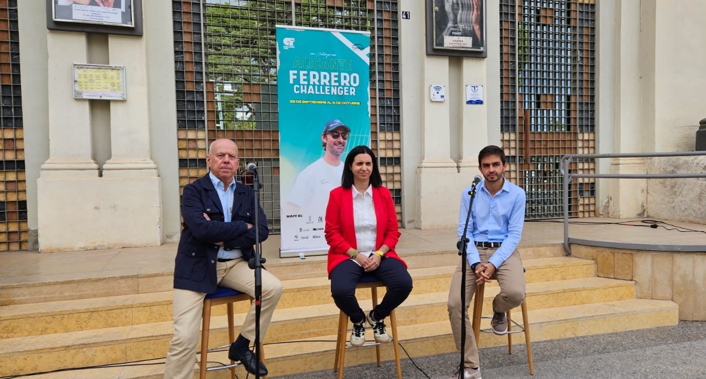 Villena acogerá una nueva edición del Alicante Ferrero Challenger, que tendrá lugar del 28 de septiembre al 5 de octubre en las instalaciones de la Academia Ferrero. La presentación oficial se ha llevado a cabo este martes a las puertas del Teatro Chapí, con motivo de su centenario, en un acto en el que han participado Maite Gandía, edil de Deportes; Iñaki Etxegia, CEO de la Academia Ferrero; y Antonio Martínez, fundador de la Academia y entrenador en su día de Juan Carlos Ferrero, ambos promotores del evento.