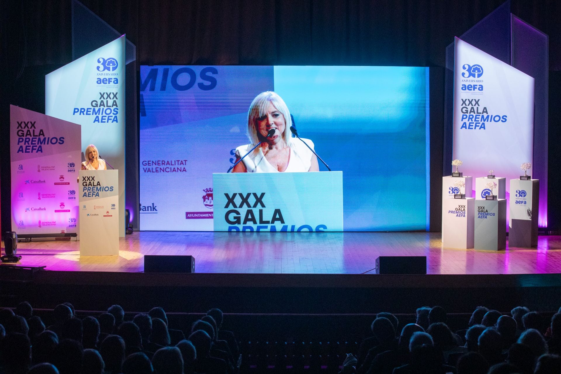 La Asociación de la Empresa Familiar de Alicante (AEFA) ha celebrado este jueves la XXX edición de sus premios anuales en el Teatro Wagner de Aspe, en un acto que ha reunido a más de 300 representantes del ámbito empresarial, político y social. La gala ha sido una cita especial marcada por el 30 aniversario de la asociación, que desde su fundación ha trabajado para visibilizar y fortalecer el papel de la empresa familiar como motor económico, generador de empleo y defensor del arraigo al territorio.