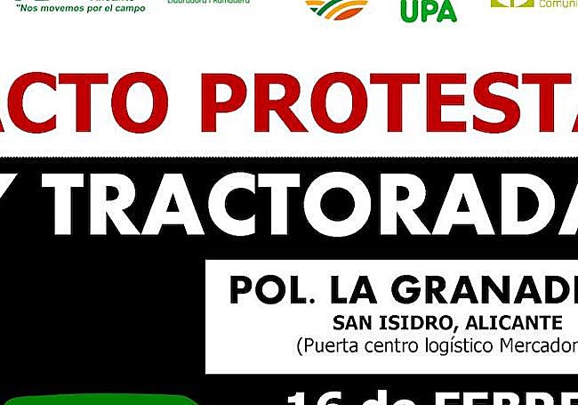 Las organizaciones agrarias de la Comunidad Valenciana: Asaja-Alicante, la Asociación Valenciana de Agricultores (AVA-Asaja), La Unió Llauradora i Ramadera, la Coordinadora Campesina del País Valenciano (CCPV-Coag) y la Unión de Pequeños Agricultores y Ganaderos (UPA-PV), con el apoyo de las Cooperatives Agro-alimentàries de la Comunitat Valenciana, han convocado tres actos de protesta simultáneos para este viernes 16 de febrero en Alicante.