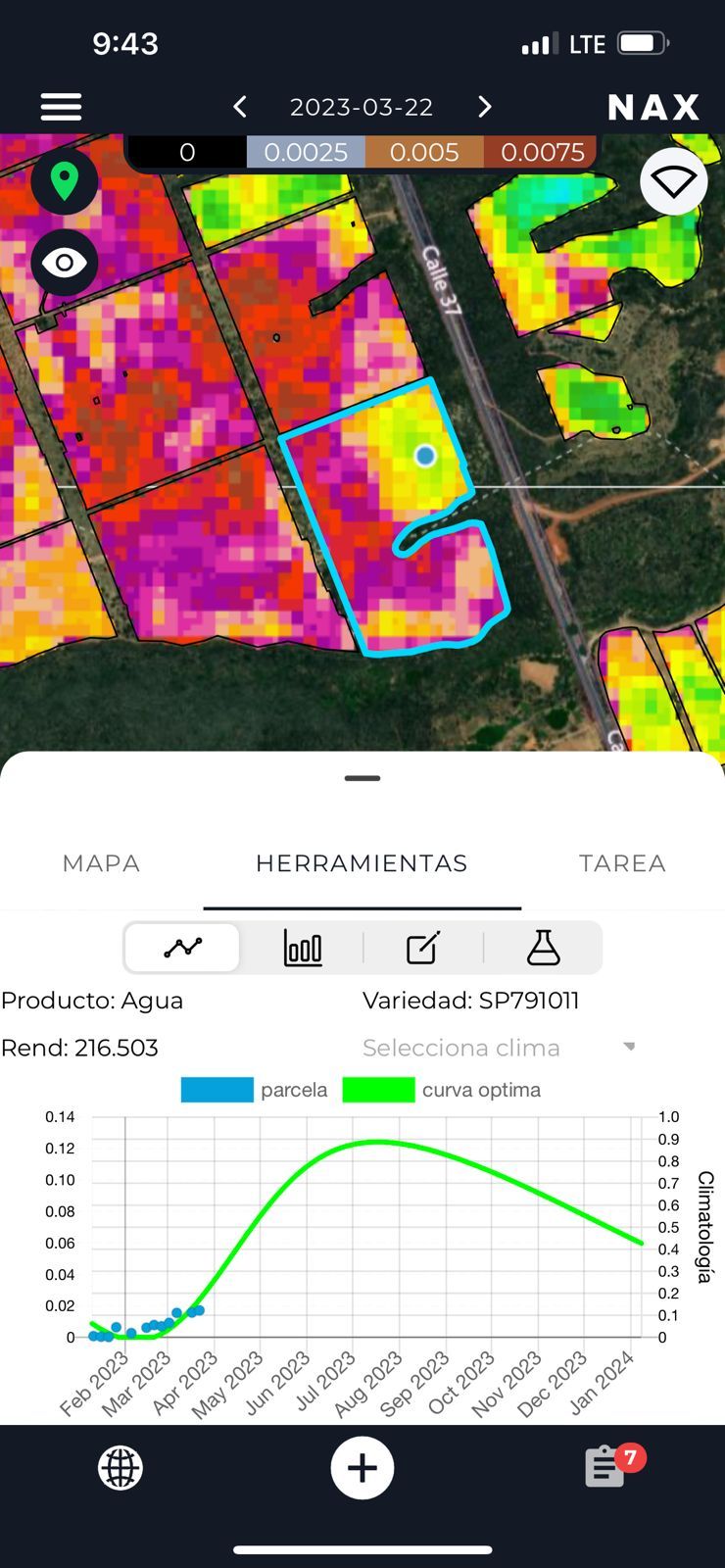 El cambio climático ha influido sobremanera en la temporada agrícola, «ahora vivimos un calendario adelantado en el que las olas de calor avanzan los cultivos y cada vez es más necesario tenerlo en cuenta», argumenta el socio de Nax. Los datos obtenidos en el campo se cruzan también con otros sobre previsiones de clima en general, antecedentes y pronósticos.