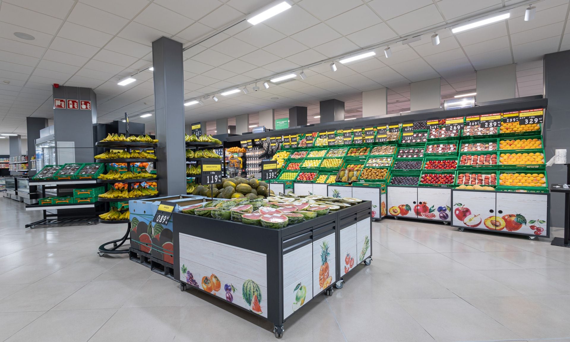 Este supermercado eficiente cuenta con una superficie de sala de ventas de unos 1.250 metros cuadrados y dispone de un diseño totalmente renovado respecto al anterior modelo de tienda con nuevos colores y materiales, en la distribución de las distintas secciones. Asimismo, apuesta por amplios espacios diáfanos que facilitan la entrada de luz natural y colores cálidos en la delimitación de los distintos ambientes.
