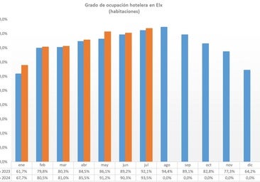 La ocupación hotelera en Elche también ha experimentado un crecimiento significativo, alcanzando un promedio del 82,75%, un 5,33% superior al anotado en 2023. Este aumento refleja el éxito de las estrategias turísticas implementadas y la creciente demanda de alojamiento en la ciudad, subrayan desde la Concejalía del área.