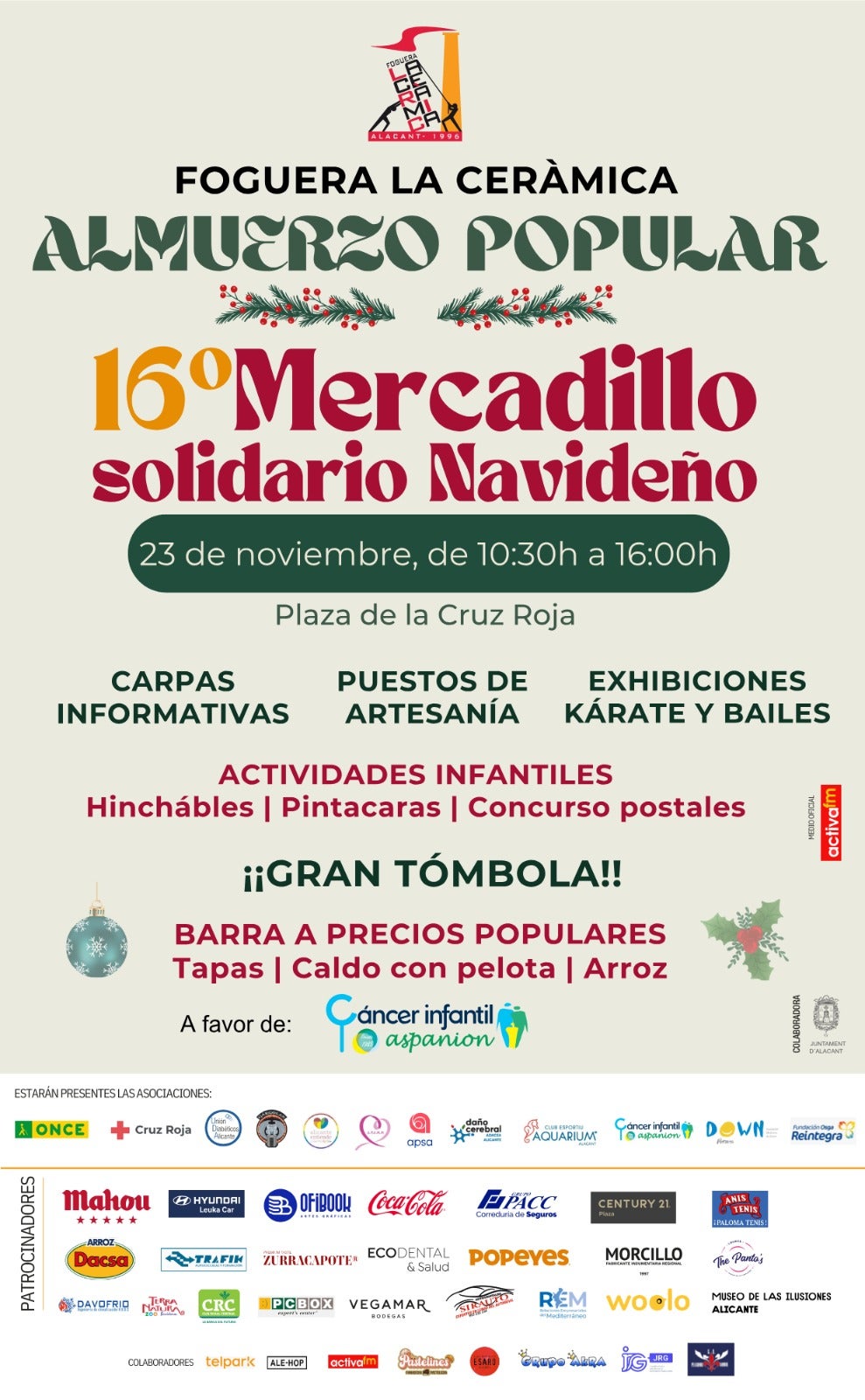 Así, los puestos rodearán la plaza de la Cruz Roja este domingo, a partir de las 10.30 horas, para dar forma a esta decimosexta edición del mercadillo solidario de la foguera La Ceràmica.