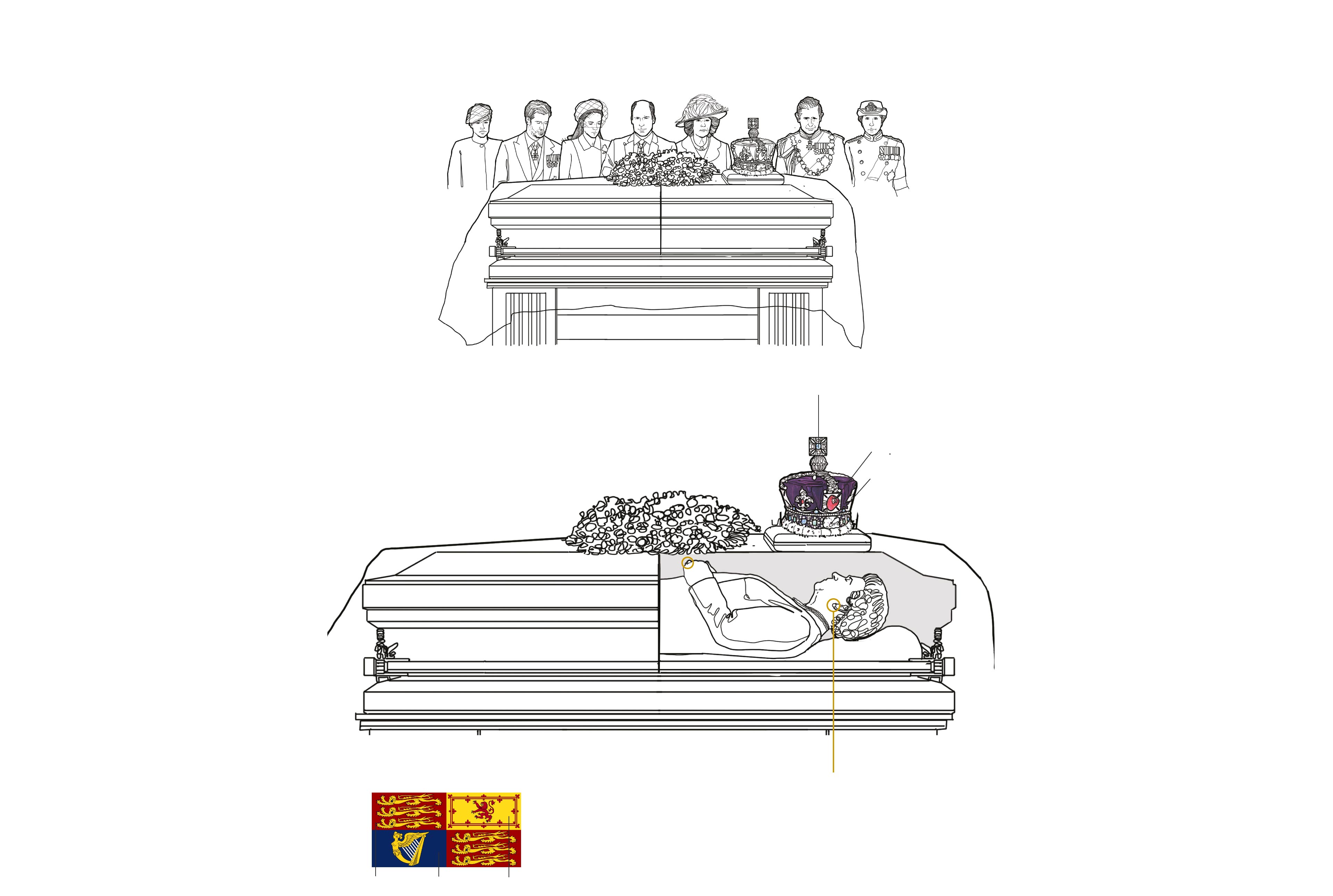 El protocolo indica que las joyas con la que se entierre la monarca tienen que pertenecer a su colección personal, no formar parte de las ‘joyas de la corona’. Isabel II llevará unos pendientes de perlas que utilizaba con frecuencia y su anillo de casada.