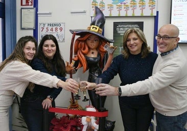 La alegría ha abarrotado la sucursal, que ha abierto sus puertas tras enterarse de la buena fortuna que ha dejado la Lotería de Navidad 2024 en 'la Bruja de la Suerte'. «Me he enterado por la radio», ha reconocido la administradora de la lotería, Ana María Alvarado. La lotera ha asegurado que «ha venido mucha gente a celebrarlo con nosotros» mientras brindaba con sus empleadas frente a la simpática bruja que reparte suerte en el municipio del Medio Vinalopó.