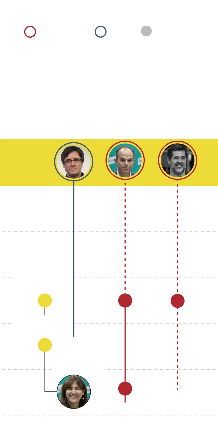 Carles Puigdemont era el principal dirigente nacionalista de octubre de 2017 y lo sigue siendo en su partido, a pesar de que ha renunciado a las responsabilidades orgánicas. Dimitió como presidente de la formación y ahora preside el consejo para la república, en Waterloo, desde donde trata de mantener el liderazgo del espacio político del centroderecha soberanista, que en 2017 era el PDeCAT y antes Convergència.