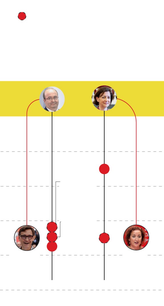 Iceta fue nombrado ministro por Pedro Sánchez, primero de Administraciones Públicas y más tarde de Cultura, mientras que Granados es la portavoz del grupo socialista en el Senado. En su lugar, quienes llevan las riendas del socialismo catalán en estos momentos son Salvador Illa y Alicia Romero. Illa fue ministro de Sanidad durante la pandemia, pero durante los hechos de octubre era el secretario de Organización del PSC. Los socialistas representaban en otoño de 2017 la tercera fuerza en el Parlament. Ahora son la primera.