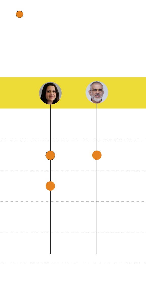 La formación naranja es, junto al PP, la que más cambios ha experimentado en estos últimos cinco años. Inés Arrimadas lideró la oposición en el Parlament de Cataluña. Tras el 155 y la convocatoria de elecciones por parte de Mariano Rajoy, volvió a encabezar la candidatura liberal y ganó los comicios de 2017. Obtuvo la primera victoria de una formación no catalanista en unos comicios autonómicos en Cataluña.