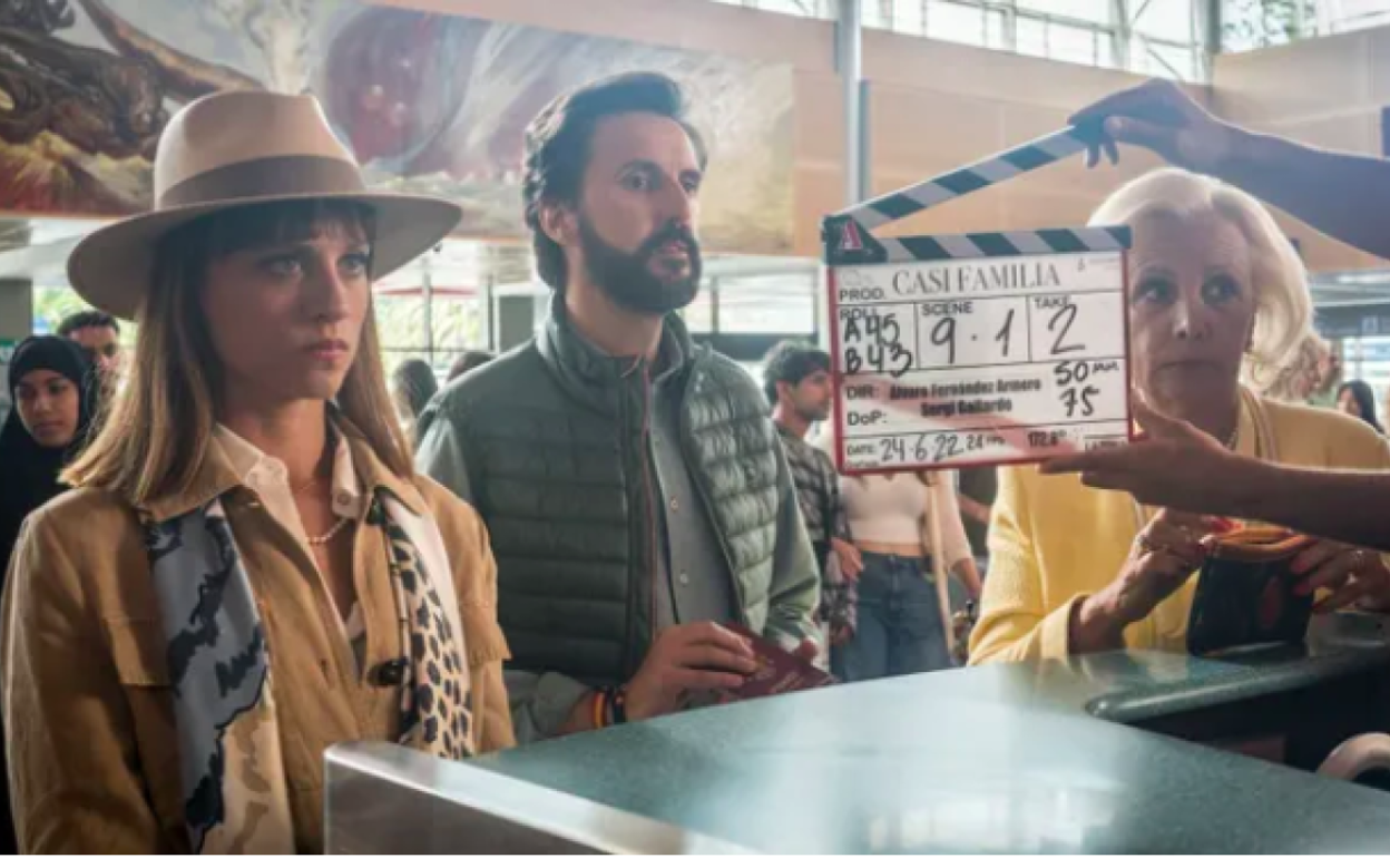 Michelle Jenner, Julián López y Elena Irureta en el rodaje de 'Casi familia', título anterior de '8 apellidos marroquís'. Emilio Pereda/Mediaset