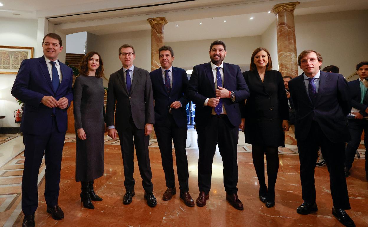 A punto de cumplir ocho meses al timón del PP Alberto Núñez Feijóo puede presumir de haber conseguido la paz interna en sus filas. Una unidad sin fisuras de la que ayer sacó pecho flanqueado por tres de sus cinco barones con bastón de mando –Isabel Díaz Ayuso, Alfonso Fernández Mañueco y Fernando López Miras– y que contrastó con el plantón que le dieron a Pedro Sánchez este fin de semana algunos de los principales dirigentes territoriales del PSOEdurante su proclamación como presidente de la Internacional Socialista. «Buena parte de los líderes autonómicos excusaron su asistencia del acto», remarcó el líder de los populares, en referencia a las sonadas ausencias de Emiliano García-Page, Javier Lambán o Ximo Puig.