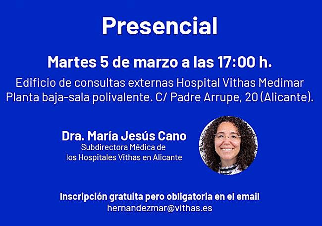 El Hospital Vithas Medimar ofrece un Aula Salud sobre los cuidados de salud durante el periodo del Ramadán. La iniciativa tiene lugar el próximo martes 5 de marzo a las 18 horas, de forma gratuita, pero de inscripción obligatoria en el email: hernandezmar@vithas.es, y estará impartida por la doctora María Jesús Cano.