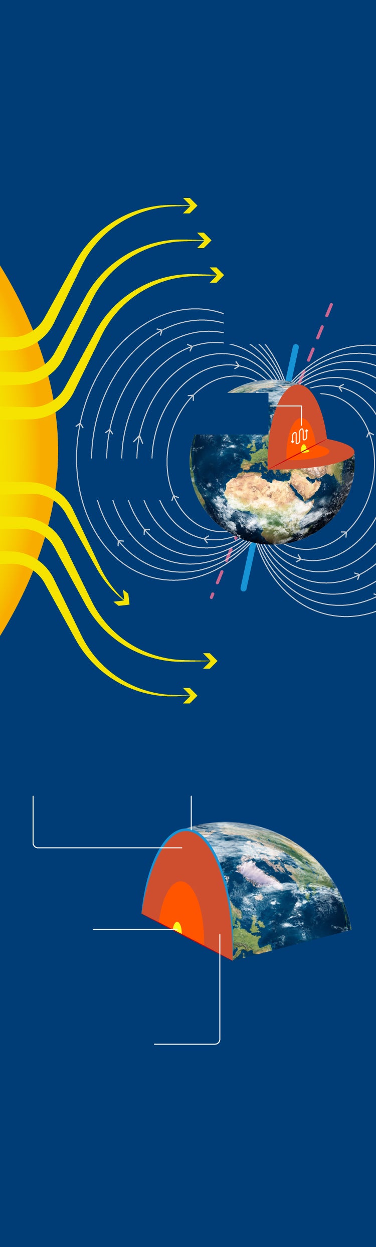 Una posible explicación es que se esté produciendo una lucha entre dos grandes fuerzas. Por un lado, el campo magnético de la Tierra, que se crea en el núcleo exterior líquido y que está estrechamente ligado a la presencia del núcleo interno terrestre, hace que este gire. Por otro, ese impulso es contrarrestado por el manto, cuyo campo gravitacional ralentiza dicho movimiento de rotación. Así, los investigadores sostienen que hay vínculos físicos entre todas las capas de la Tierra, desde el núcleo interno hasta la superficie, y que ese tira y afloja hace que el núcleo interno gire hacia adelante y hacia atrás en un ciclo de aproximadamente 70 años.