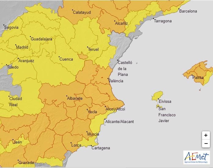 Desde el pasado lunes, parte de la provincia de Alicante está ya en alerta amarilla por valores que rondarán desde los 35ºC hasta los 39ºC. En concreto, el aviso meteorológico afecta a la parte sur, desde la Vega Baja hasta la Marina Baja, incluido Alicante y Elche.