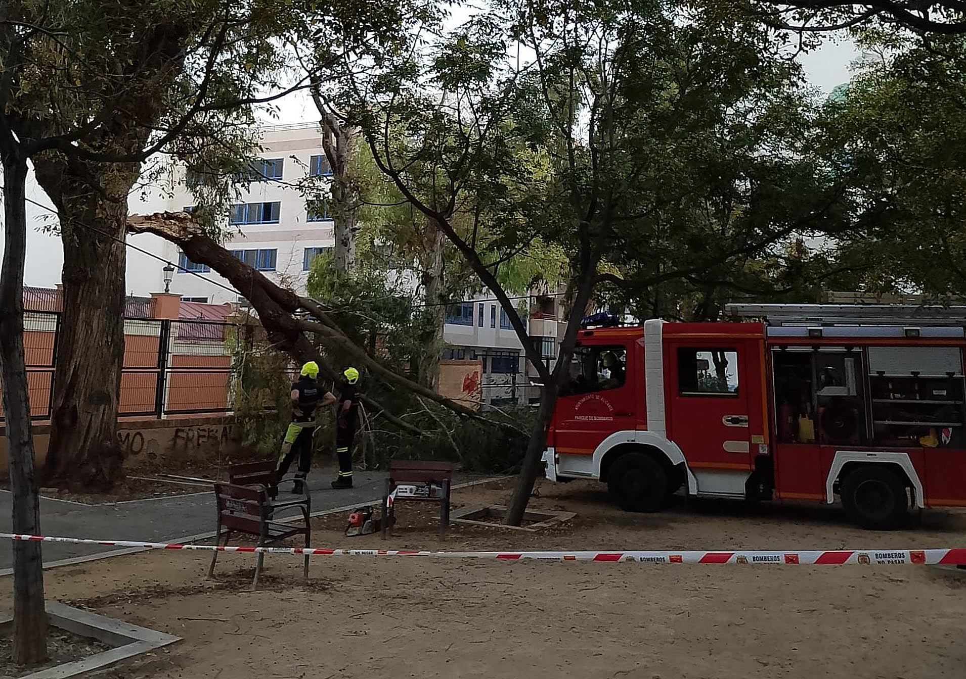 Cae una rama de gran tamaño junto a un parque infantil de Alicante