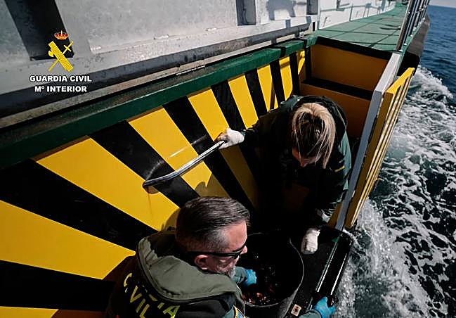 Dos de ellos tenían un equipo de submarinismo sin la boya de señalización obligatoria, por lo que la Guardia Civil procedió a entrevistar a los cuatro hombres, de edades entre 22 y 59 años. Uno de ellos tenía un saco que estaba lleno en su interior de equinodermos de la especie holoturia, coloquialmente conocida como pepino de mar.
