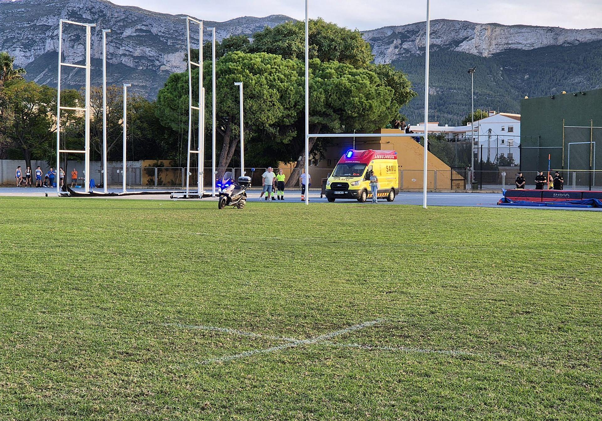 Un hombre de 50 años sufrió un infarto este sábado en las gradas de la pista de frontenis de Dénia. El suceso movilizó un amplio dispositivo sanitario y obligó a detener temporalmente la competición que se celebraba en la zona de la pista de atletismo