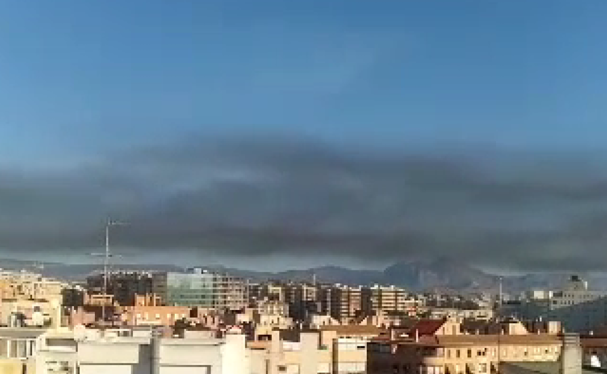 Un incendio en una fábrica de ladrillos abandonada tiñe de negro el cielo de Alicante