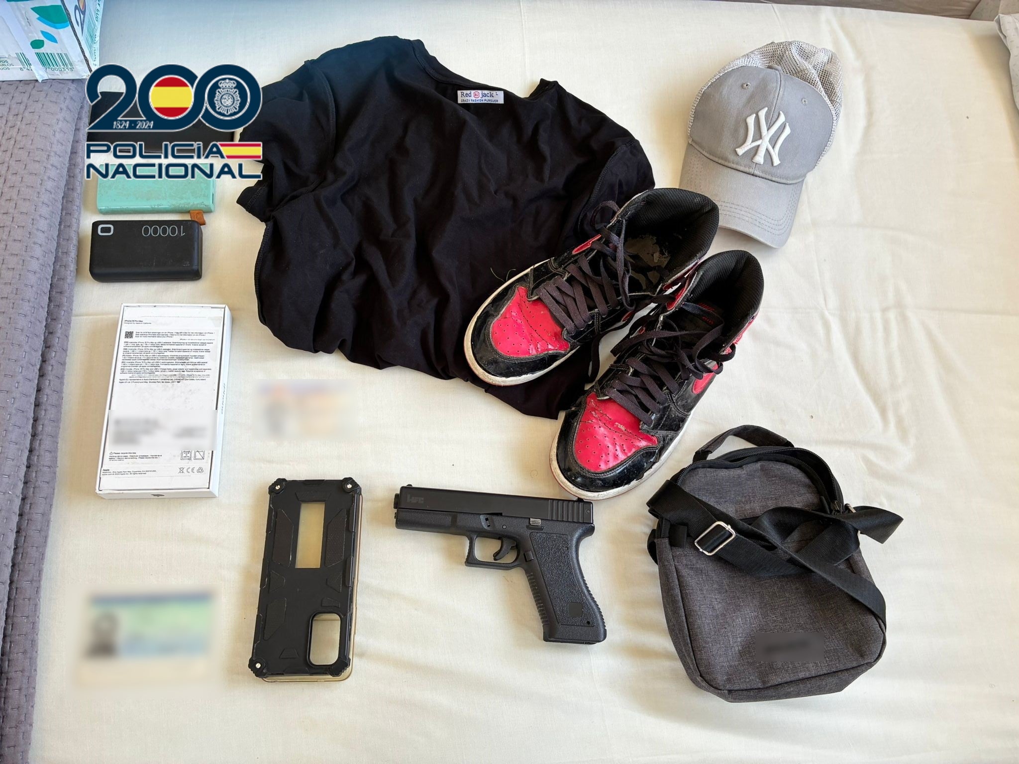 Los agentes encargados del caso, llevaron a cabo un registro domiciliario en el alojamiento en el que se encontraba residiendo el detenido, donde hallaron el teléfono móvil de la víctima del primer suceso y su documento de identidad, además de una pistola simulada y prendas que se relacionaron con la ropa que llevaba puesta cuando perpetró los asaltos. También se hallaron otros efectos sustraídos a las víctimas del segundo robo.